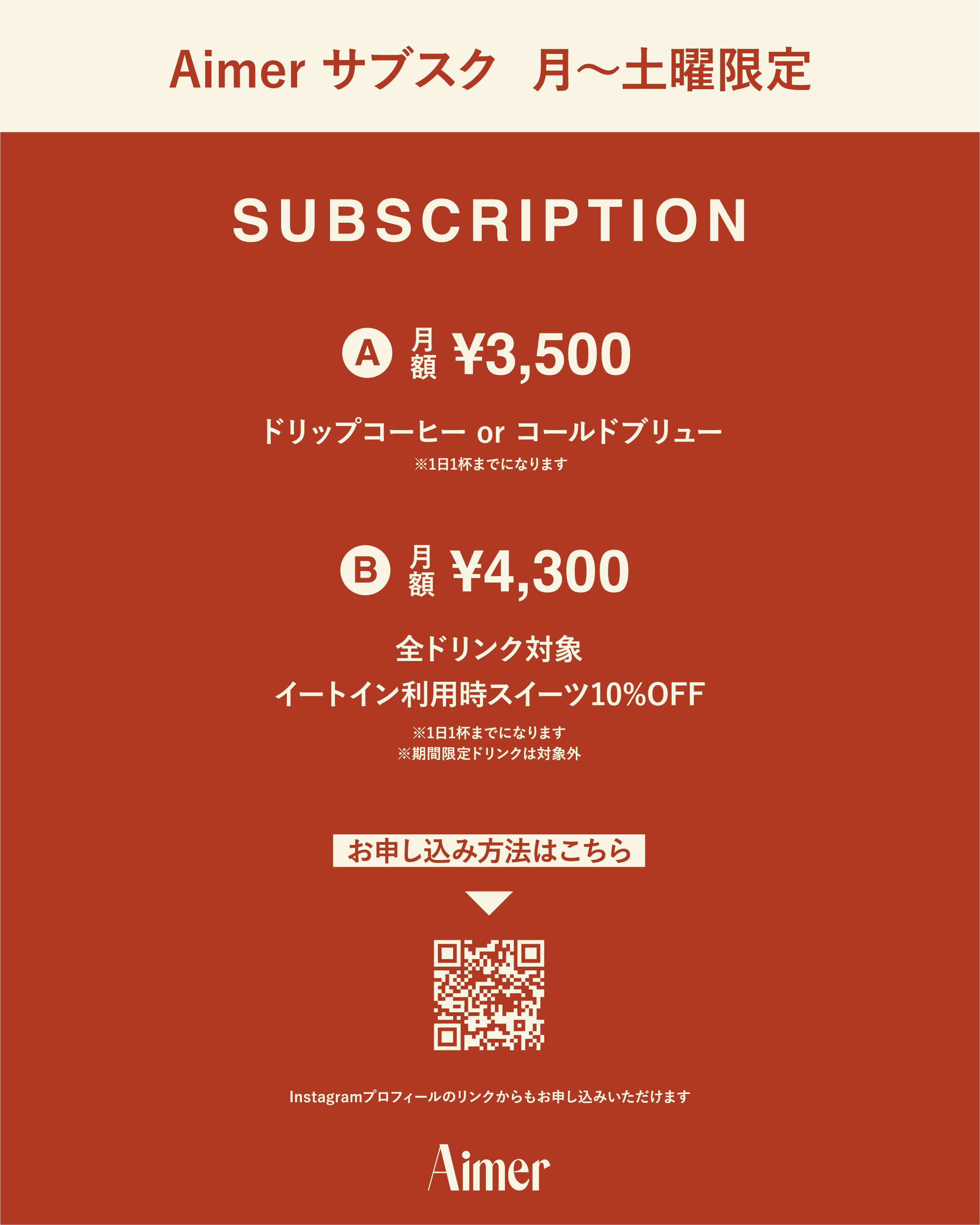 サブスクのご利用可能日を「月〜土曜」へ変更させていただきました。